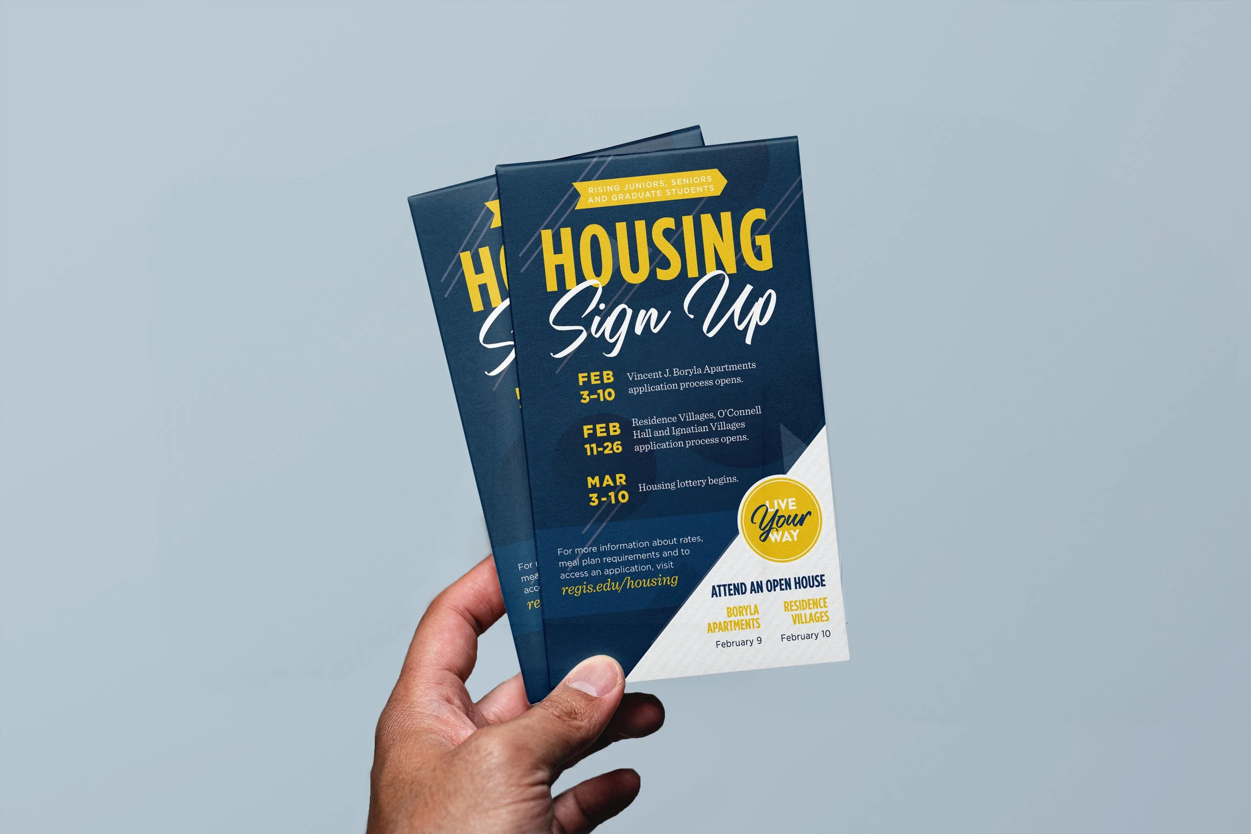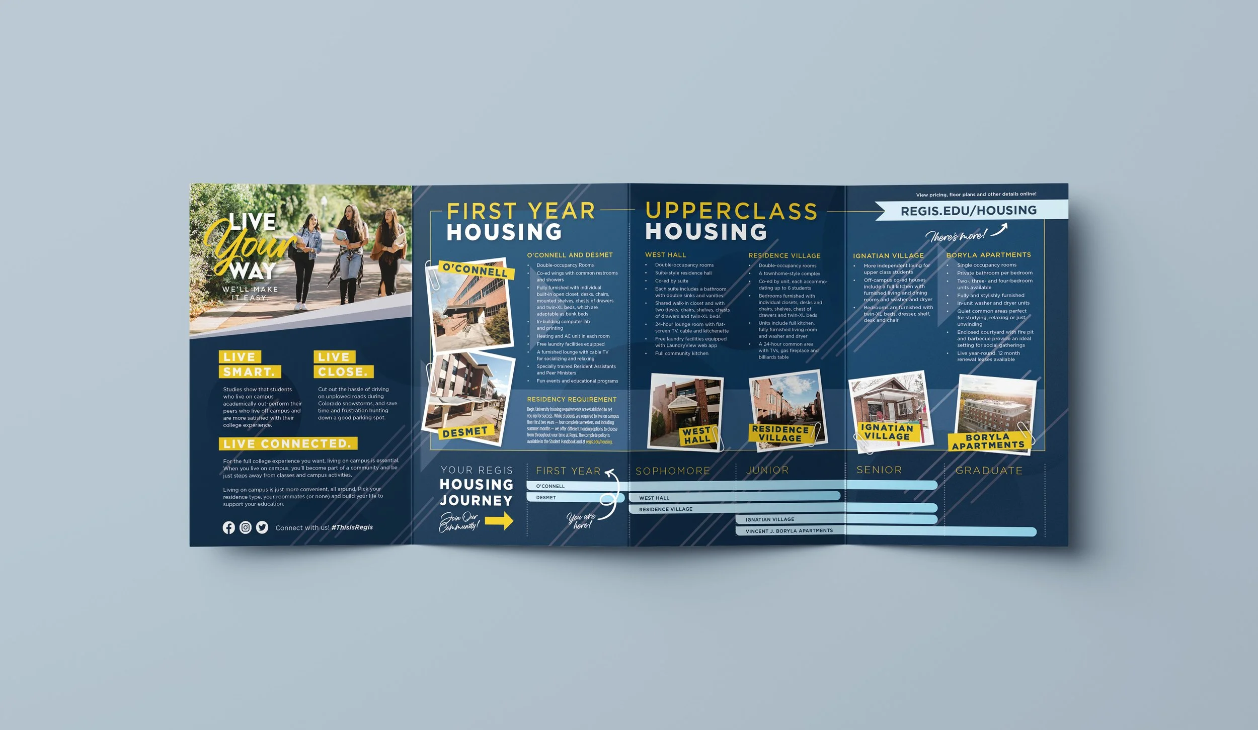 For this multi-channel campaign, I developed a suite of promotional materials including housing guide mailers, handouts, postcards, on-campus signage, and art directed a supporting sticker set. The designs and empowering messaging aim to inspire students to make the most of their collegiate journey by choosing on-campus housing.